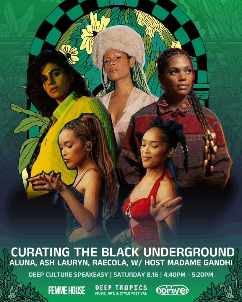 Later that afternoon, FEMME HOUSE joins forces with NOIR FEVER for “Curating the Black Underground,” a panel moderated by Madame Gandhi and featuring powerful voices like Aluna, Ash Lauryn, and RaeCola. The panel will explore reclaiming and recognizing the Black roots of dance music while emphasizing the importance of fostering spaces where artistic freedom and representation thrive.
