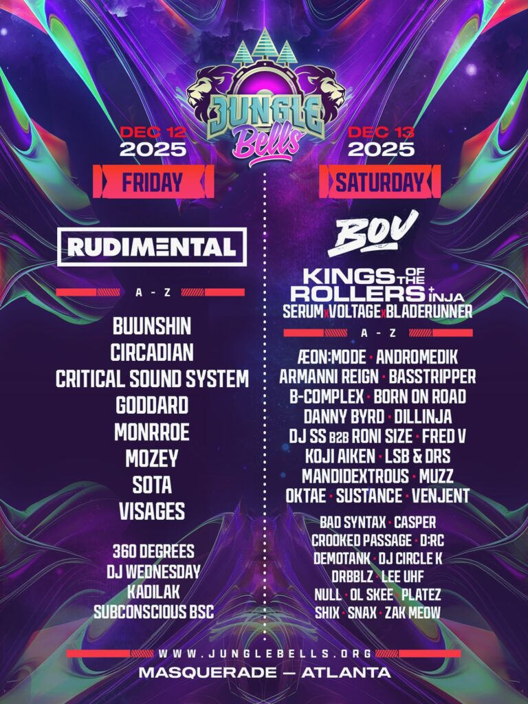 After an insane turnout in 2024 for Jungle Bells, their annual winter festival, it is levelling up to a two-night takeover on Friday, December 12 and Saturday, December 13 at The Masquerade. One thing that makes this festival so special is its global pull, because both fans and artists travel from all over the world to be part of it. Most of the artists on the lineup come from outside the U.S., and with four stages and 70 artists, this year’s festival is expected to draw an even bigger international crowd. With only a week to go, it is time to lock in tickets. Let’s check out the full lineup and the official after parties.
