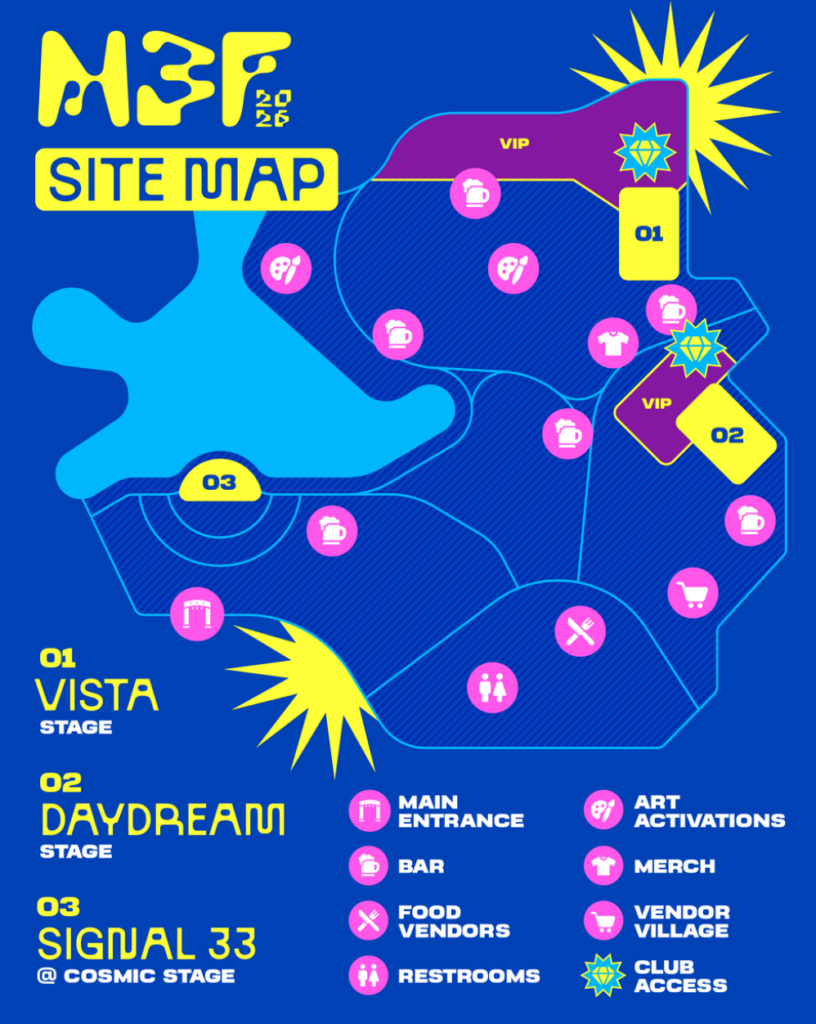 Three different types of tickets will be offered: General Admission, VIP, and the new Club Pass. VIP offers lounge access, premium viewing areas, and express entry. The Club Pass features a side-stage viewing area, a private backstage lounge, private bathrooms, and an all-inclusive bar. Get tickets here before they sell out! Keep up with all things M3F using the links below.