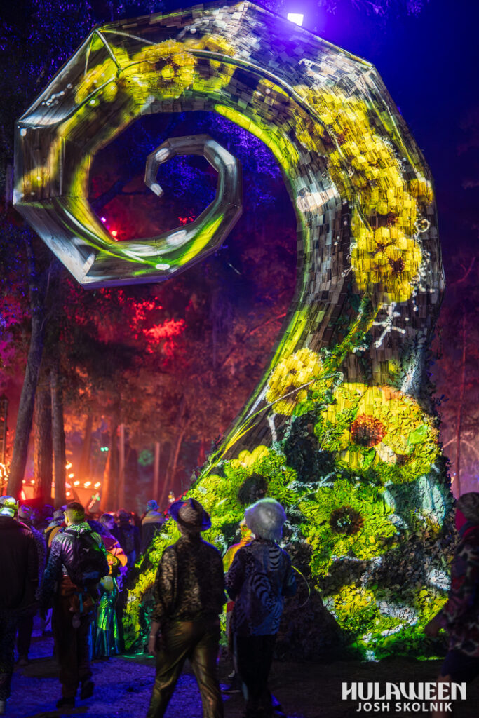 On the sustainability side, Hulaween continues to make meaningful efforts through its Green Team initiative, which focuses on reducing waste, diverting recyclables and compostables from landfills, and educating attendees on responsible disposal. Many festivalgoers embraced that ethos, bringing refillable bottles and hydropacks to minimize single-use waste. The art installations themselves reflected a similar environmental consciousness, with many constructed from natural or locally sourced materials.