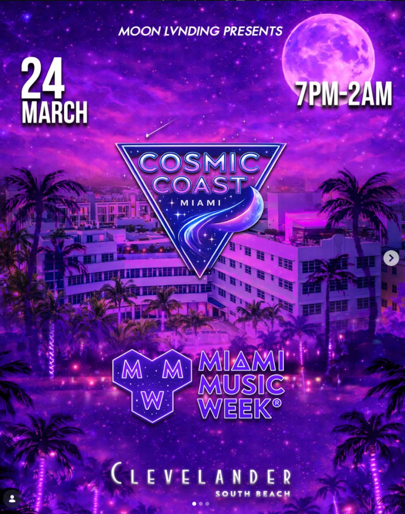 The Meet The Press event will take place on Thursday, March 26th, from 12-2 pm at the Clevelander hotel. It connects artists directly with the journalists, editors, PR teams, and outlets shaping the electronic music conversation — including Moon Lvnding. Moon Lvnding will also be hosting the Cosmic Coast party on March 24th from 7 pm-2 am at the Clevelander.