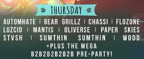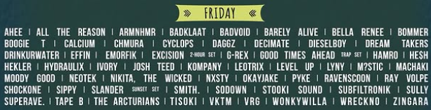 STVSH and Flozone triggered our radar systems for Thursday’s pre-party, with wubby OG dubstep on the horizon. Of course, Thursday’s featured attraction is the mega b2b2b with double the action! This year, the mega b2b2b will play on the main Prehistoric Stage as well as the fan-favorite fully-immersive Crater Stage. Who will sneak on the decks and surprise the headbangers this year? Get in early to find out!